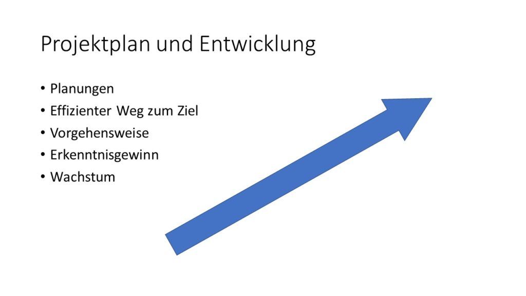 Ein Pfeil hat verschiedene Bedeutung in einem Projekt. Zunächst steht er für die Planung. Der Pfeil steht für den kürzesten Weg zum Ziel. Es ist der Weg, der durch eine gute Planung beschrieben wird.